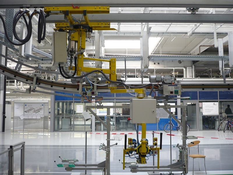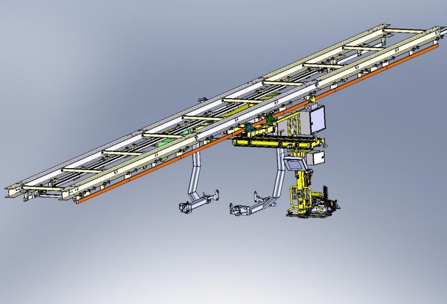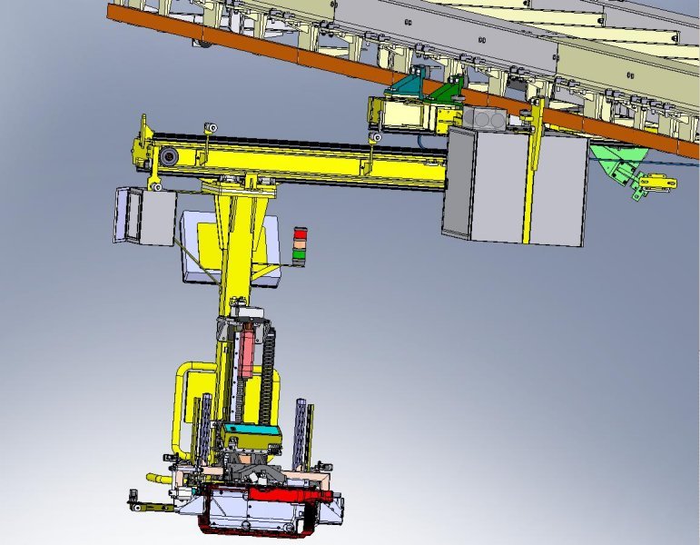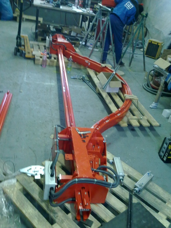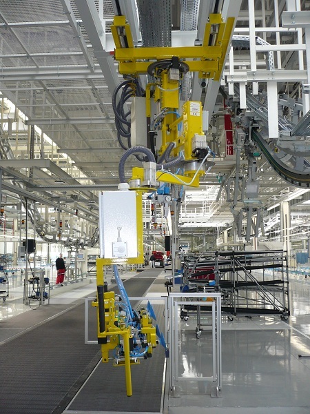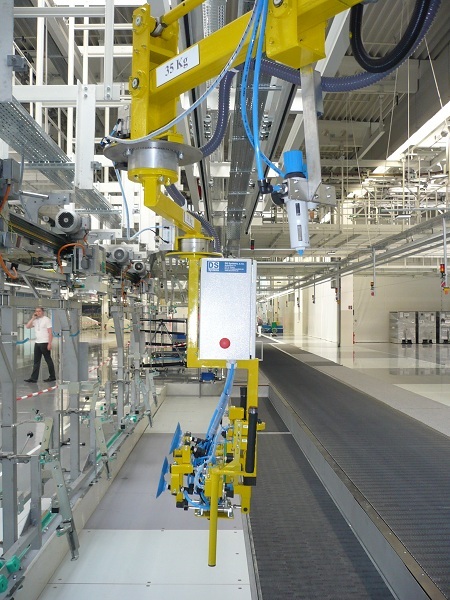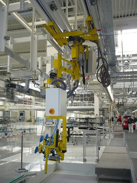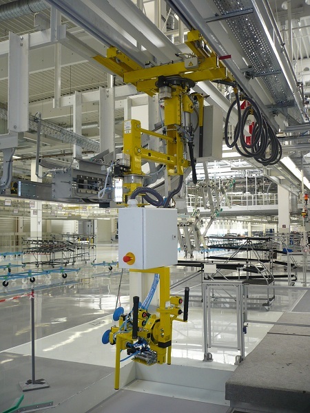 Manipulátor vyvinutý pre vkladanie batérie do hybridného vozidla koncernu VW. Celé riešenie bolo dizajnované a realizované spoločnosťou DS Systems.