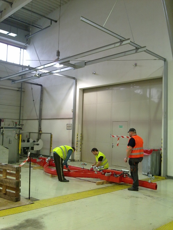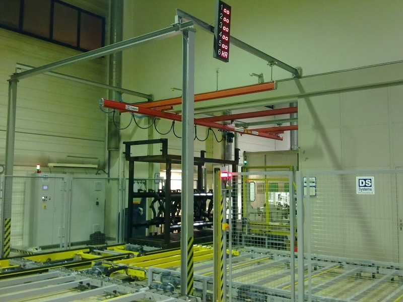 Optimalizácia logistického reťazca na vstupe a výstupe voskovacej linky. Návrh a realizácia Demag dráh, manipulačných prostriedkov a vstupného dopravníka pre logistické palety s hmotnosťou 1,5t.