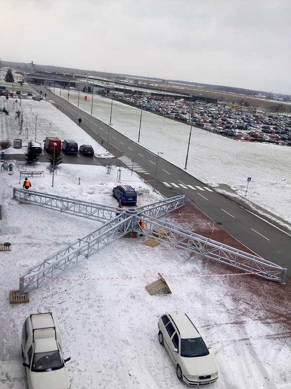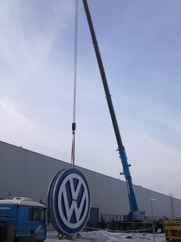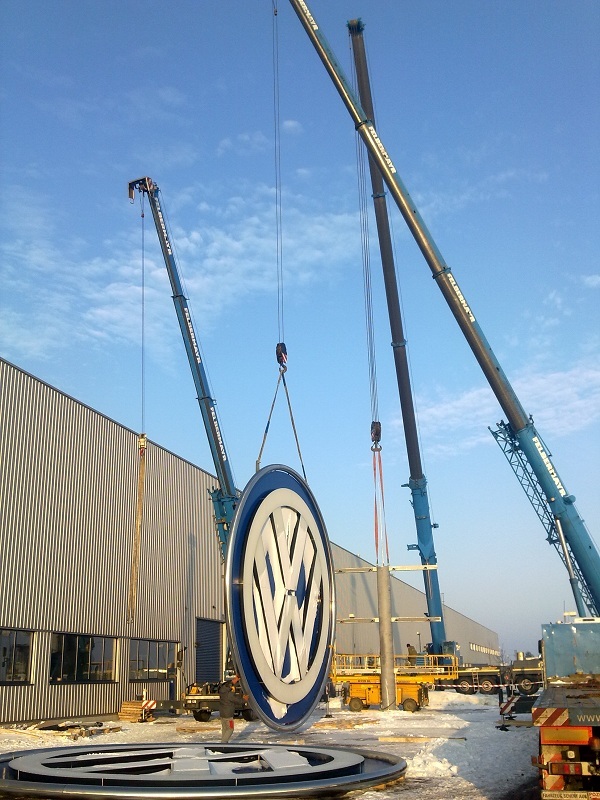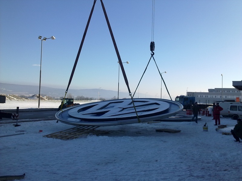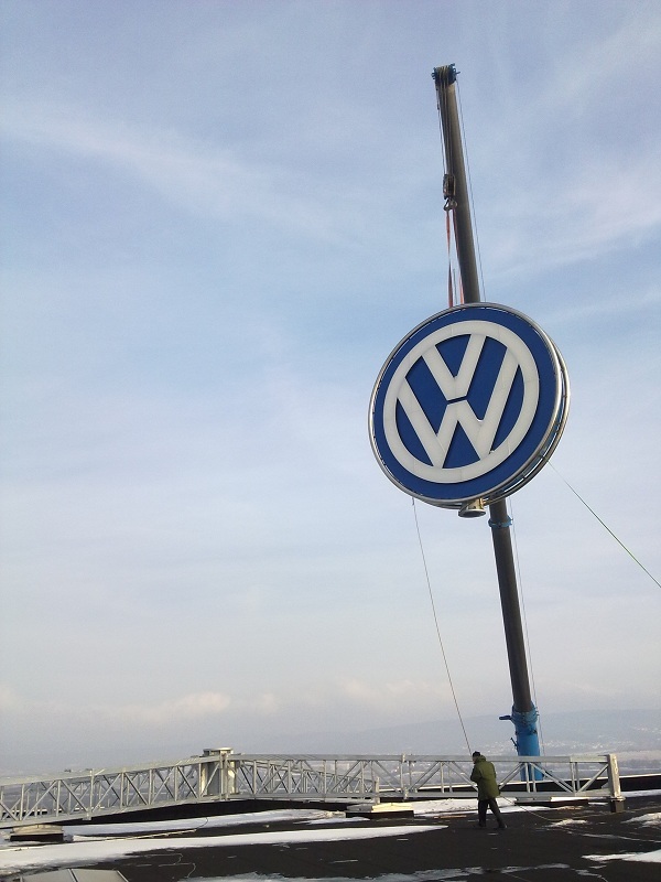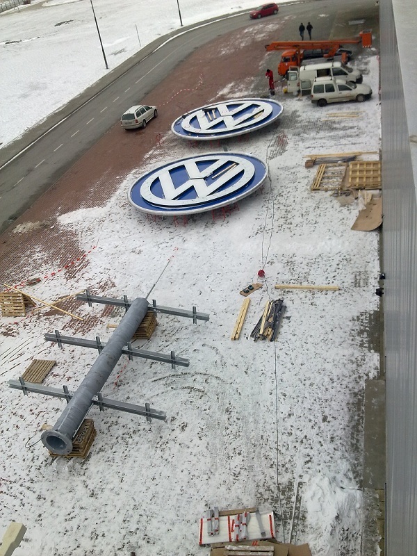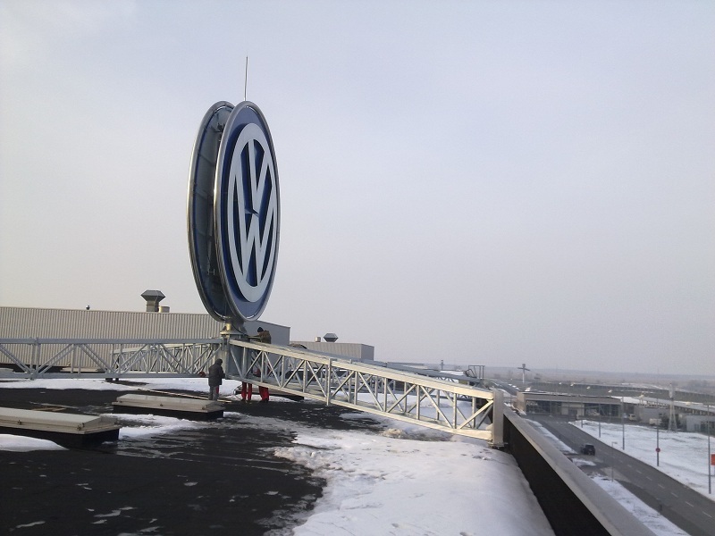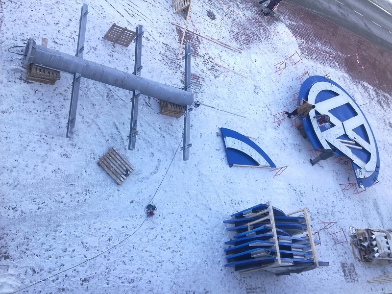 Návrh a realizácia oceľovej konštrukcie a následná montáž koncernového loga na výrobnej hale H6b.