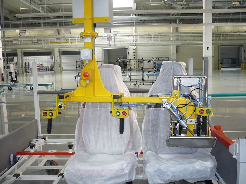 Manipulátor vyvinutý pre vkladanie sedadla s integrovanou opierkou hlavy do vozidla koncernu VW. Celé riešenie bolo dizajnované a realizované spoločnosťou DS Systems.